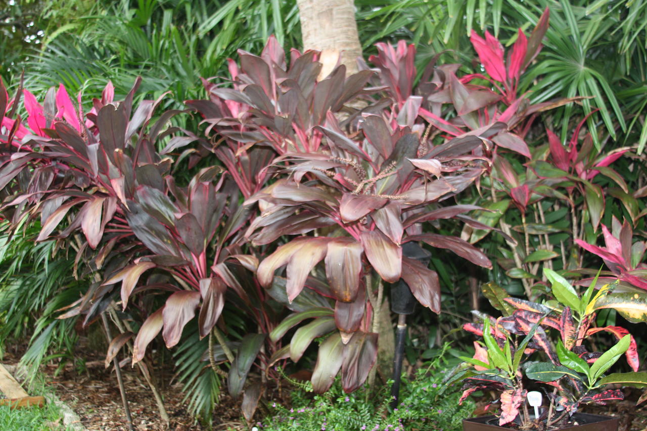 Ti plants are far more hardy than crotons where I live in California. I have friends who live in areas that experience winter frost every few years and they usually lose all their crotons that are exposed to it. Ti plants, on the other hand, will have their tops killed, but then send out numerous branches farther down the cane when the weather warms up in the spring. Ti plants are supposedly hardy down to zone 8 according to the literature, although I might question that.